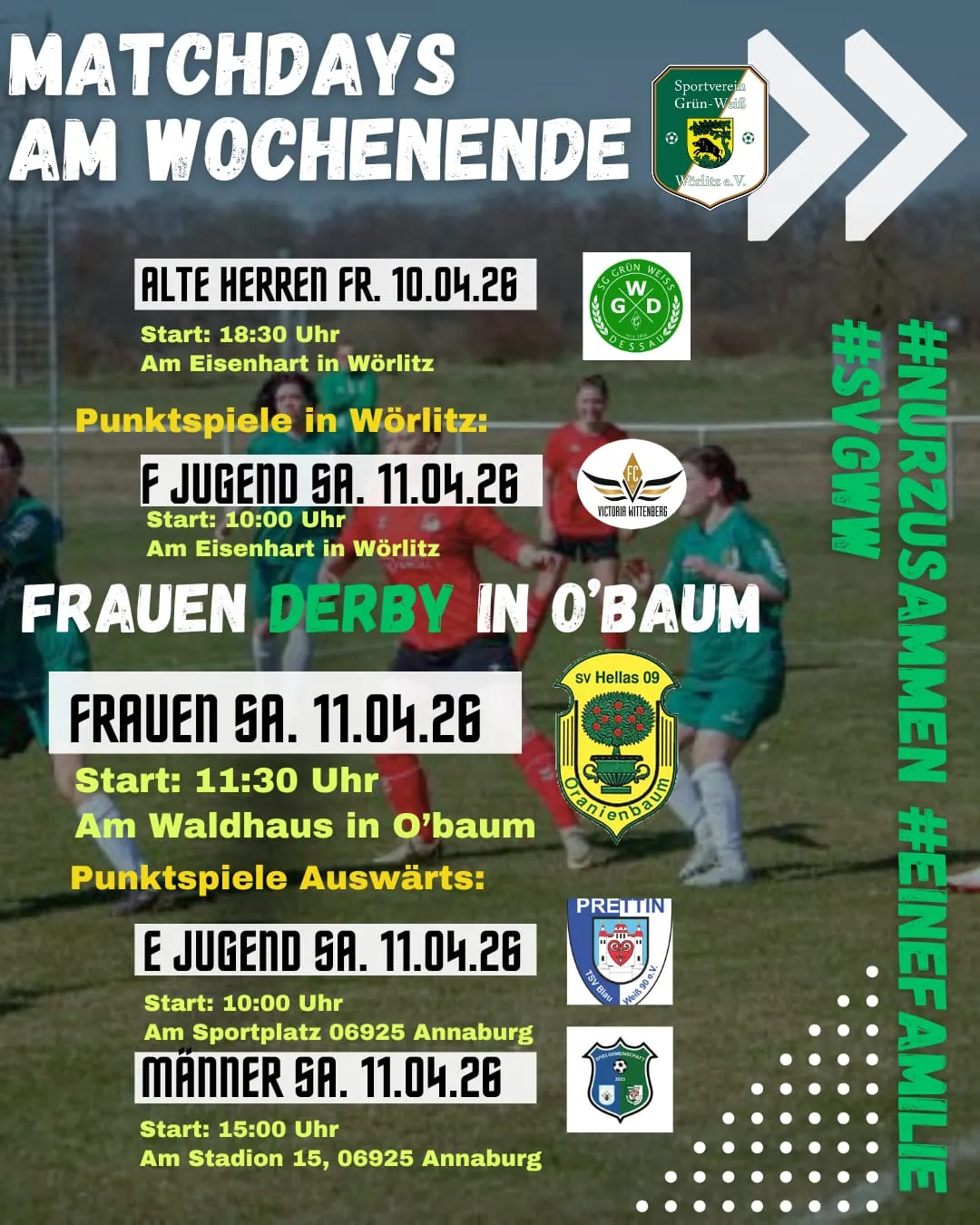 — 04.04.2026Sieg aus der Hand gegeben: Unsere Männer verlieren gestern gegen einen starken SV Eintracht Elster e.V. 2. verdient mit 2 zu 5. Der Gegner war besser. Aber wir führten durch Tore nach einfachen Kontern von Grünberg und ... [mehr]